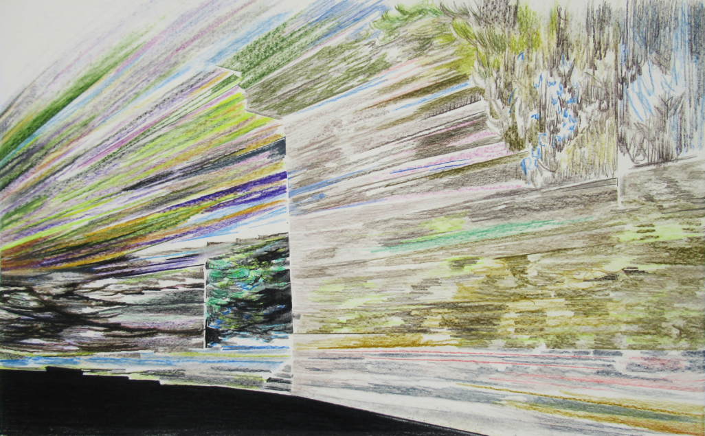 My Digital Backyard Extended 21, kleurpotlood op papier, 17 x 30 cm, 2021